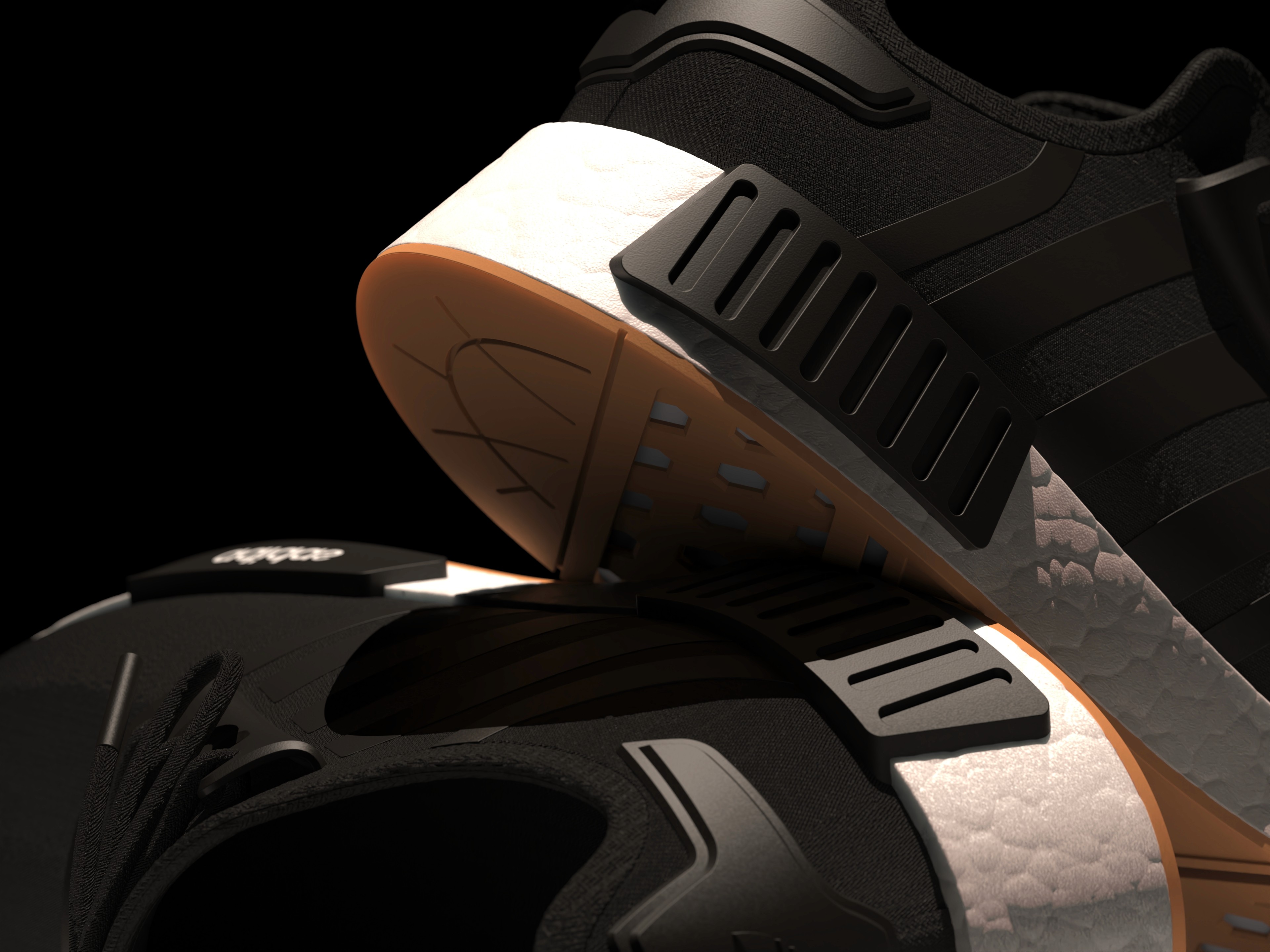 Choosing the Adidas NMD_R1 due to its distinctive and modern design, which blends both style and functionality. I knew the shoe was going to be a challenge due to its multi-material/textures and complex geometry. Its popularity and iconic design in the sneaker industry and my love for the shoe allowed me to explore, showcase and expand upon my CAD/rendering skills.