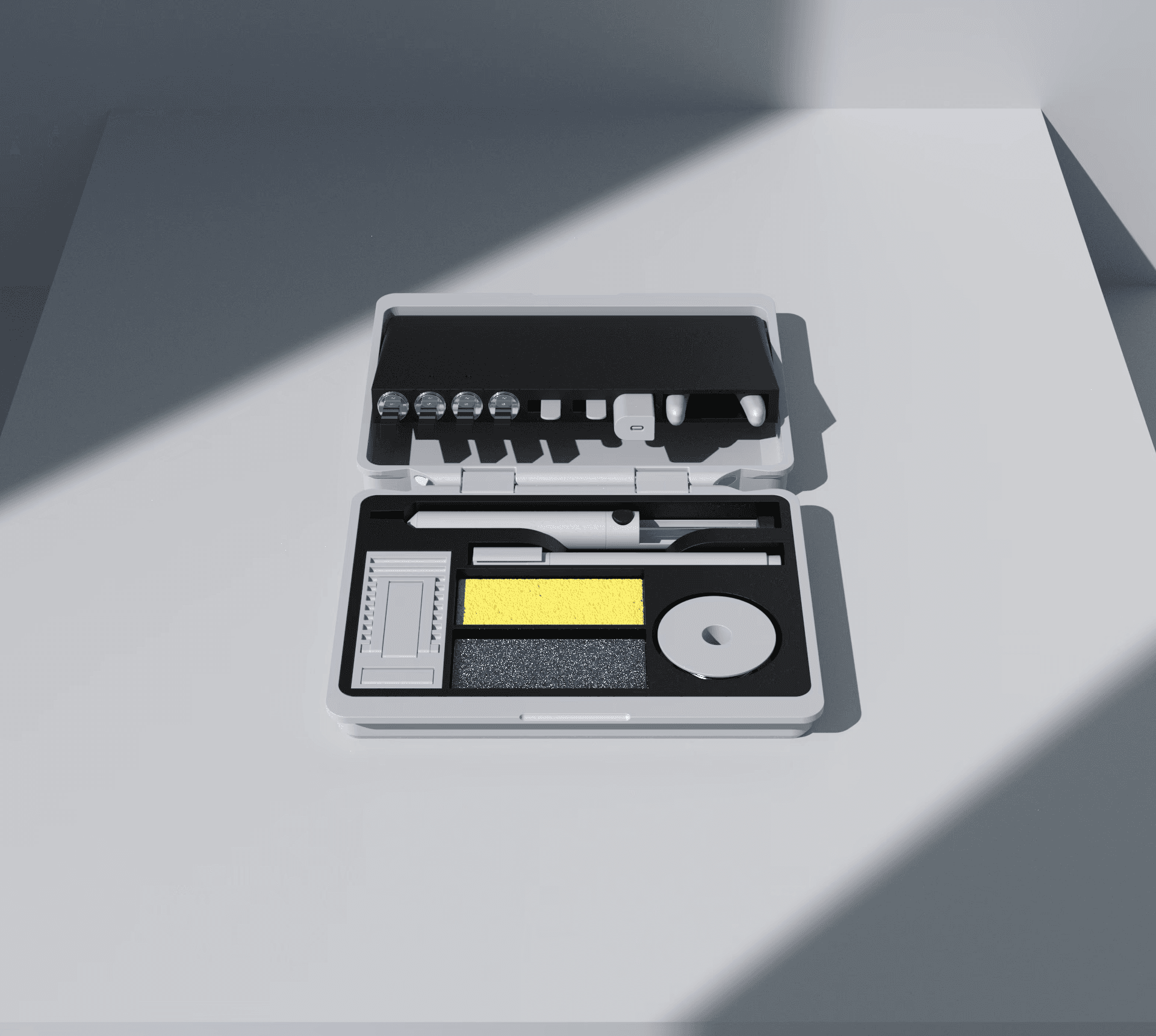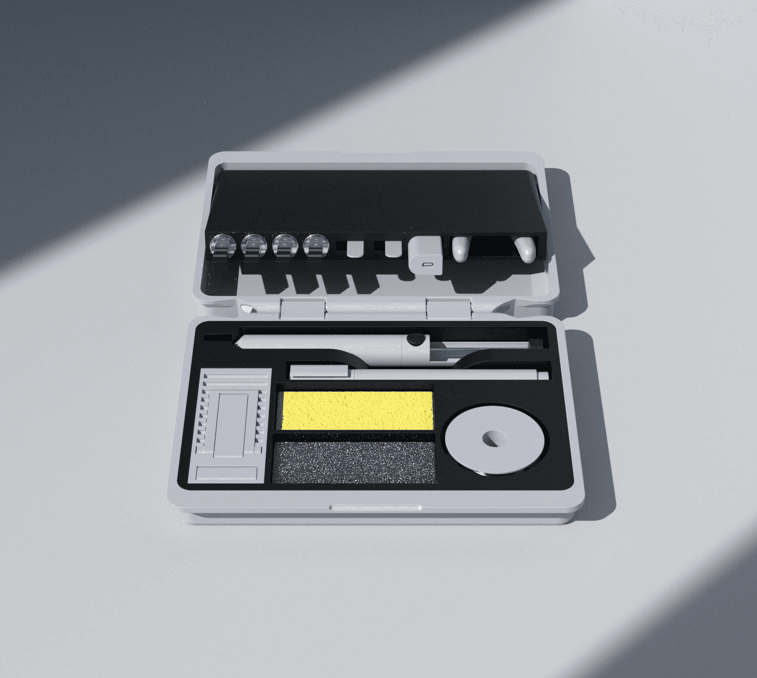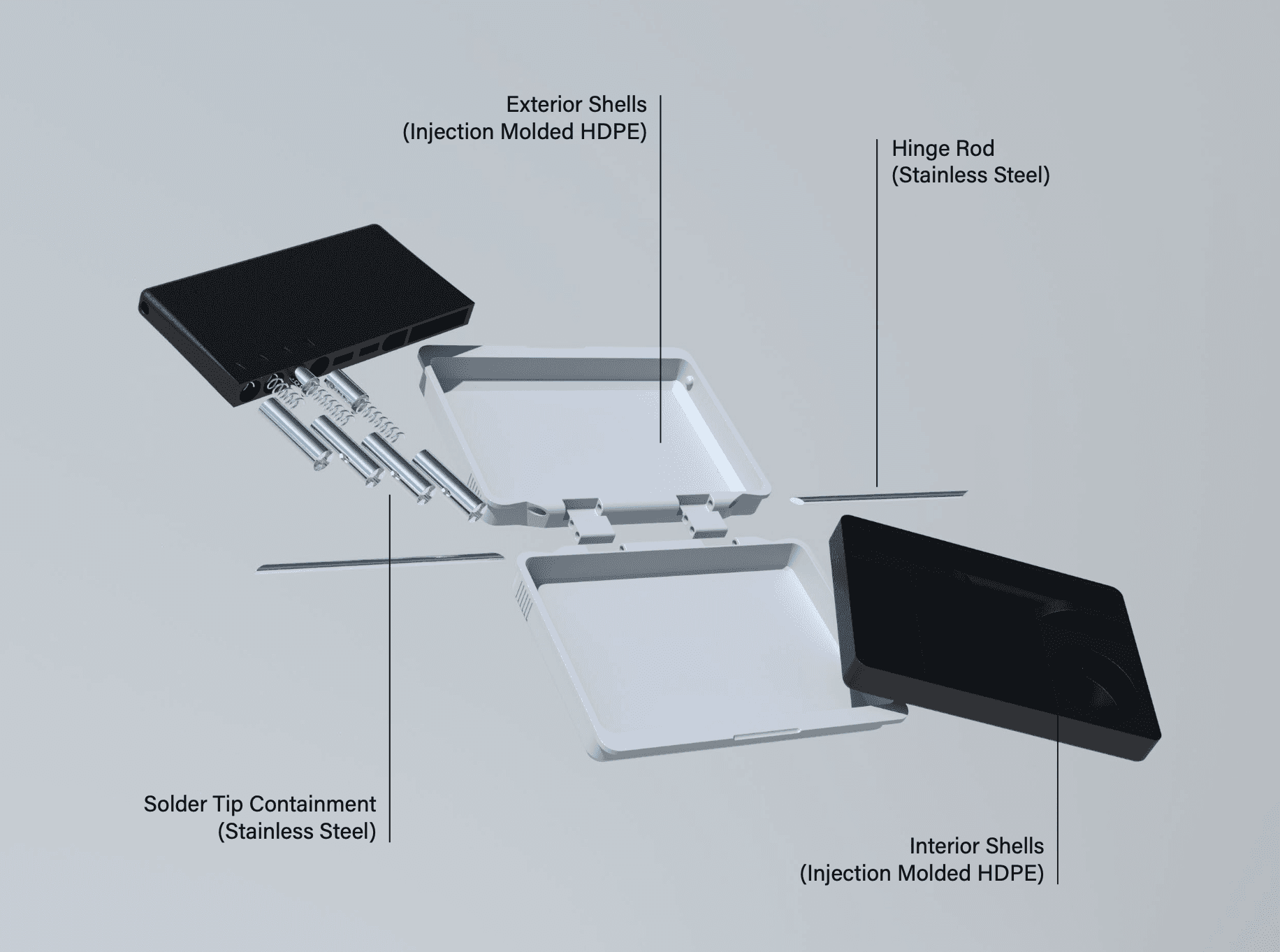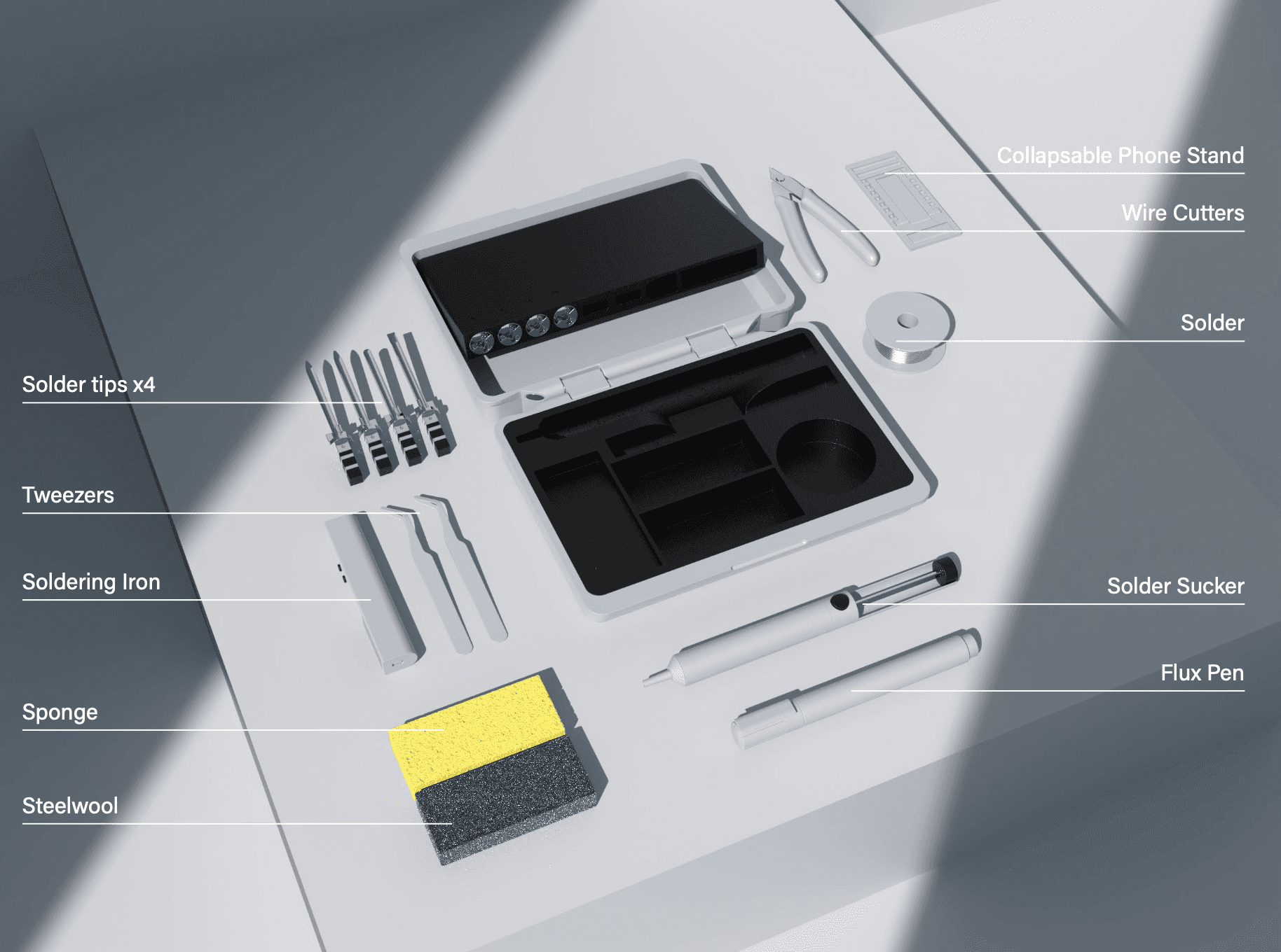 Includes all necessary tools and consumables for a soldering project, conveniently organized within a compact, portable enclosure.
